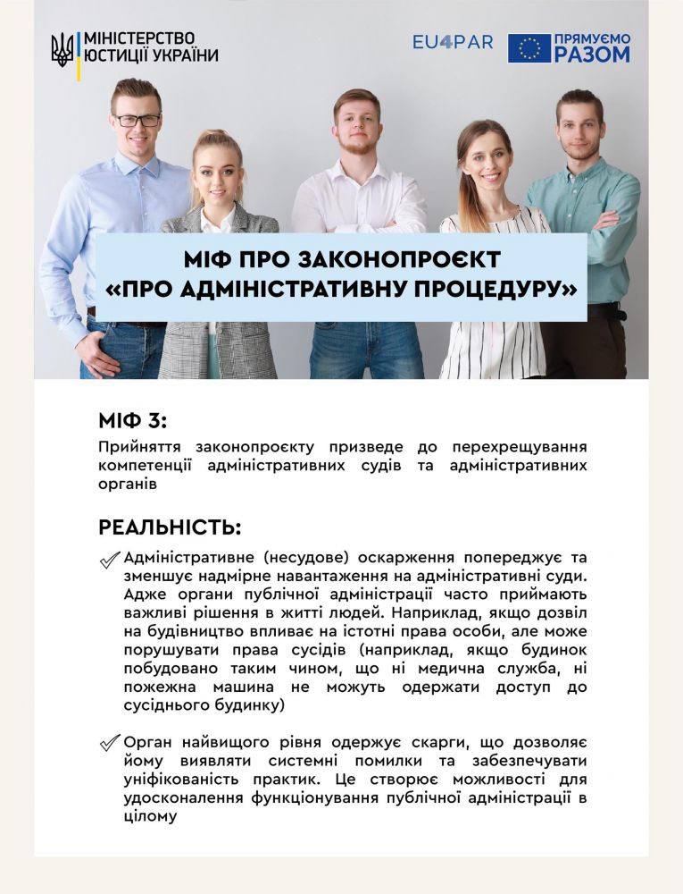 Міф №3: Прийняття законопроєкту призведе до перехрещування компетенції адміністративних судів та адміністративних органів.