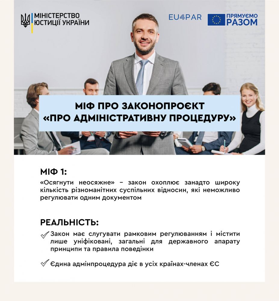 Міф №2: Іноді можна почути таку думку: "Навіщо ухвалювати закон про адміністративну процедуру, якщо вона в Україні вже існує?" Насправді ж це не так.