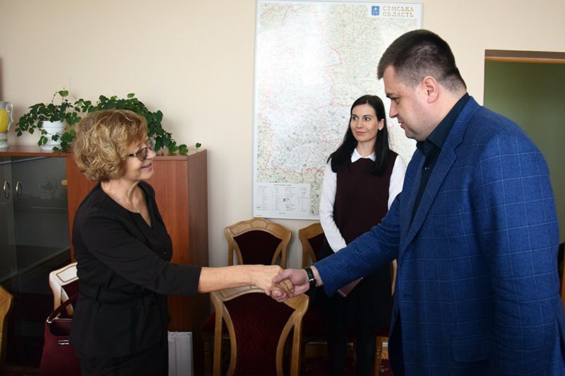Голова облдержадміністрації Микола КЛОЧКО та радник, заступник Надзвичайного і Повноважного Посла Латвійської республіки в Україні Ірена ПУТНИНЯ обговорили питання організації художньої виставки балтійських художників у травні цього року в Сумах