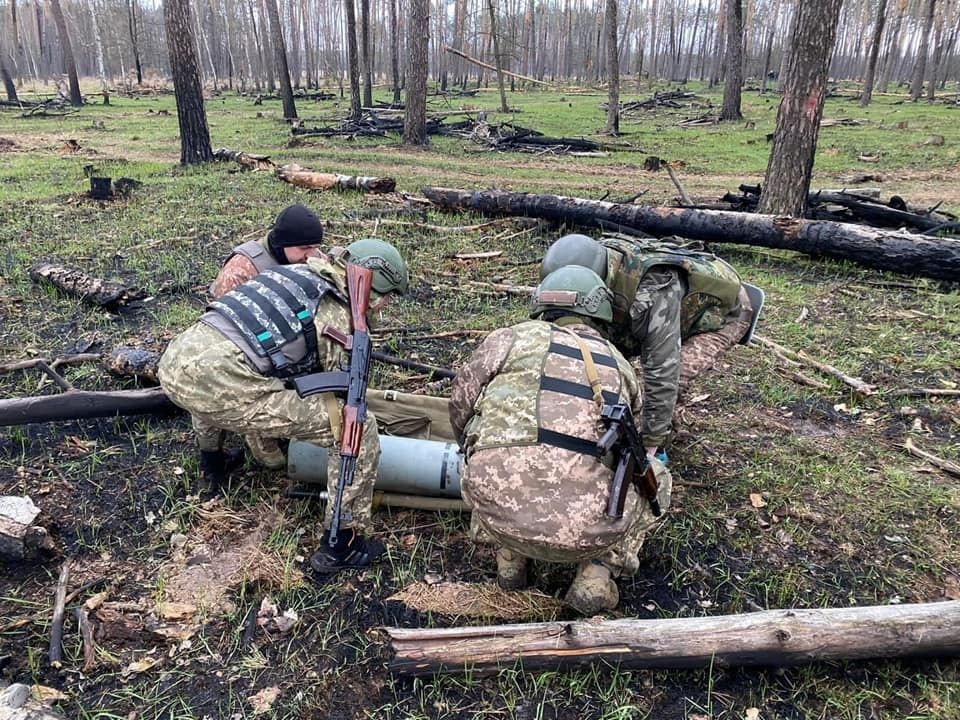 Інженерні підрозділи української територіальної оборони роблять прибирання і знешкоджують боєприпаси. Їх залишила по собі реактивна артилерія російських окупантів з міста Кяхта, що у Бурятії.