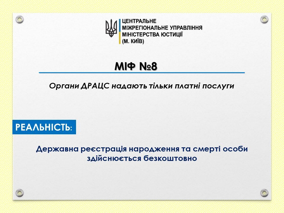 Міф №8. Органи ДРАЦС надають тільки платні послуги