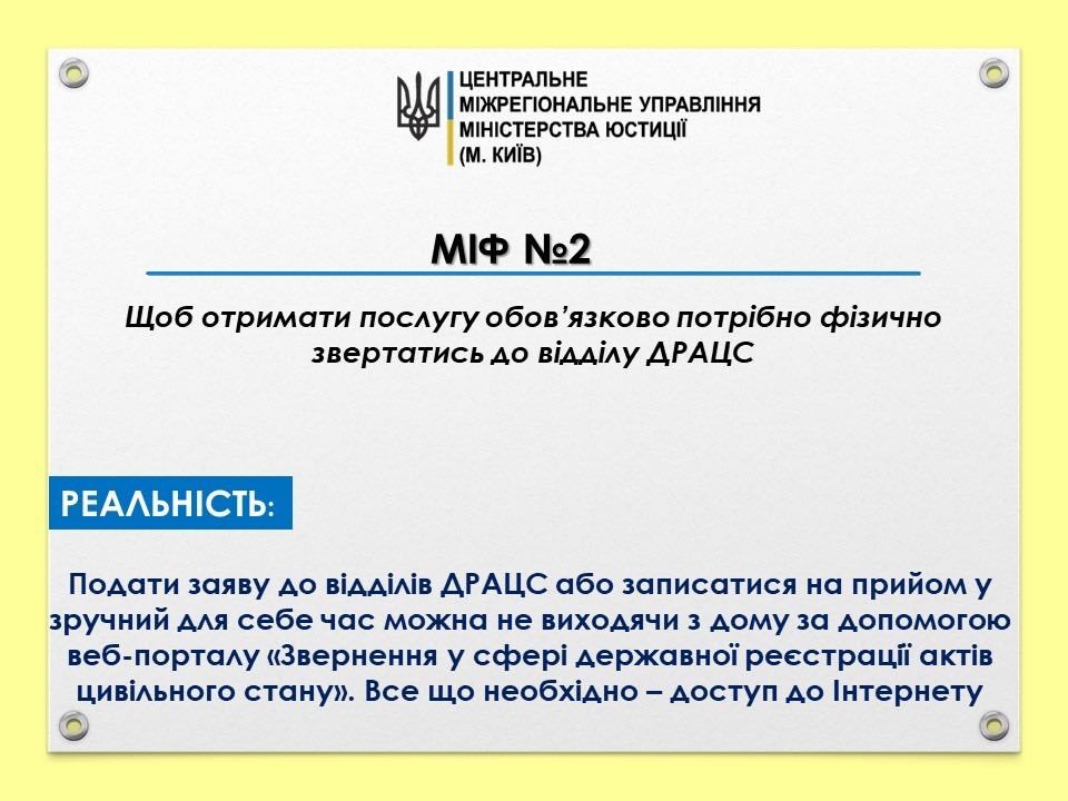 Міф №2. Щоб отримати послугу обов’язково потрібно фізично звертатись до відділу ДРАЦС