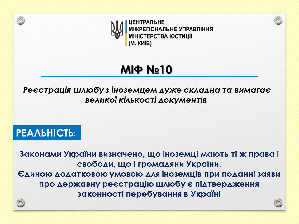 Міф 10. Реєстрація шлюбу з іноземцем дуже складна та вимагає великої кількості документів