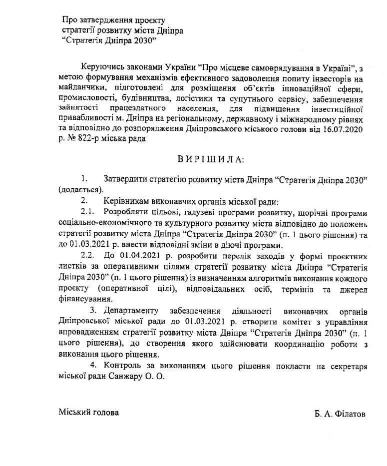Якщо уважно прочитати проект рішення міськради про затвердження «Стратегії Дніпра 2030», то можна побачити, що він більше схожий на передвиборчу програму кандидата в Президенти, а не стратегію розвитку міста.