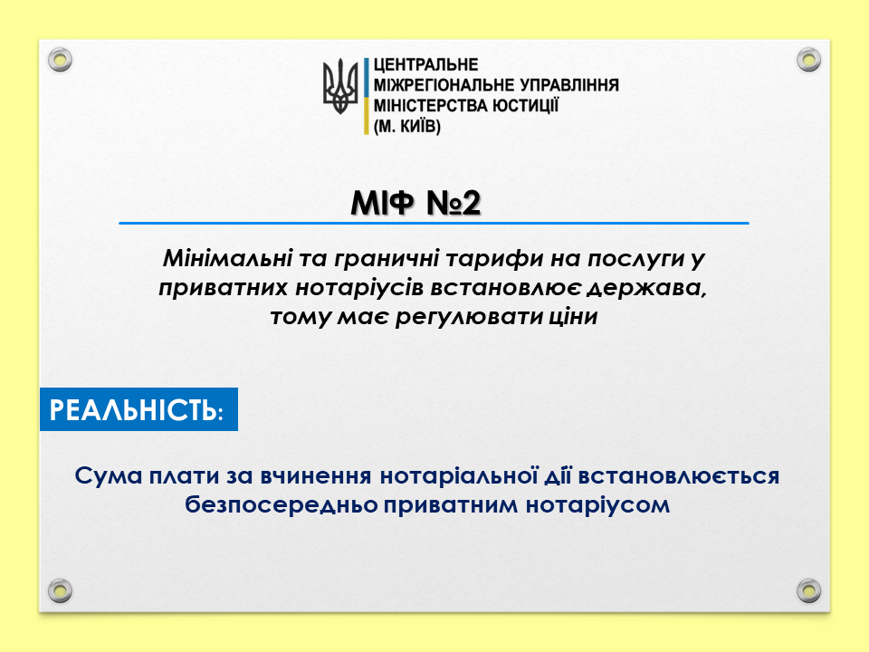 Міф 2: Мінімальні та граничні тарифи на послуги у приватних нотаріусів встановлює держава, тому має регулювати ціни.