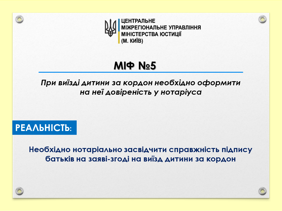 Міф 5: При виїзді дитини за кордон необхідно оформити на неї довіреність у нотаріуса.