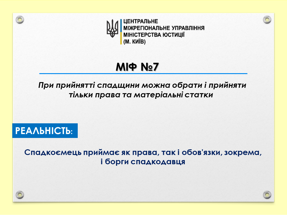 Міф 7: При прийнятті спадщини можна обрати і прийняти тільки права та матеріальні статки