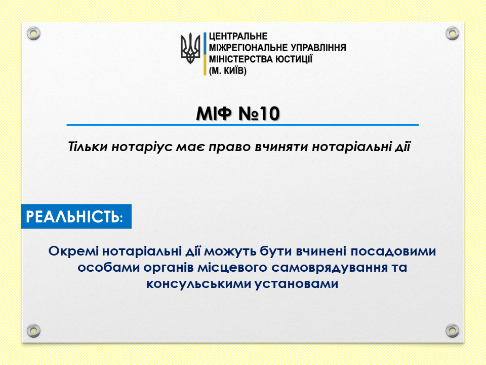 Міф 10: Тільки нотаріус має право вчиняти нотаріальні дії.