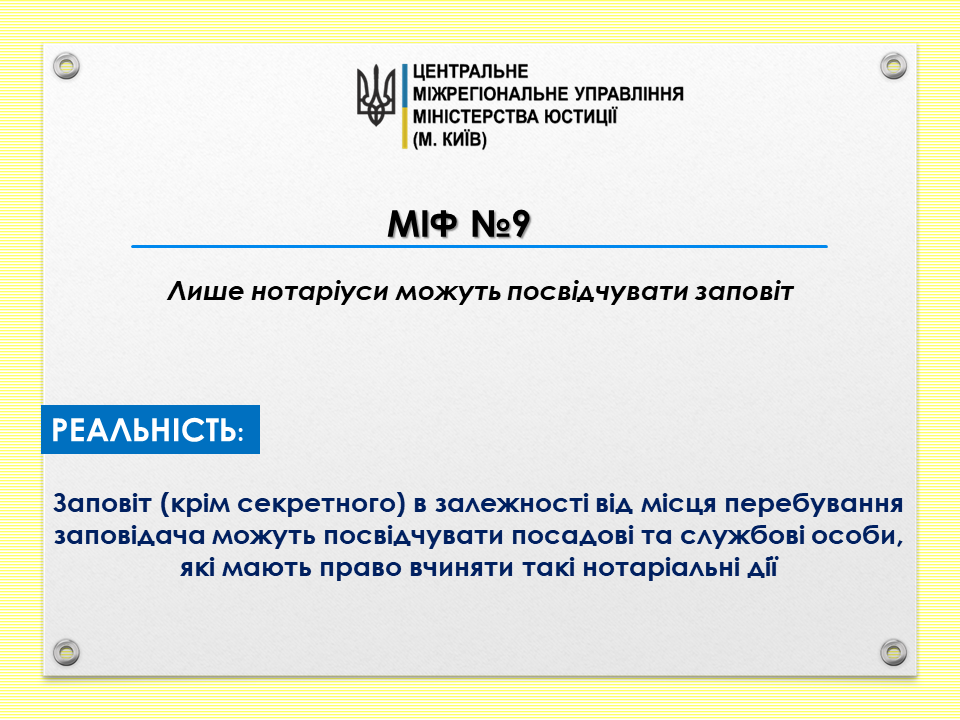 Міф 9: Лише нотаріуси можуть посвідчувати заповіт.