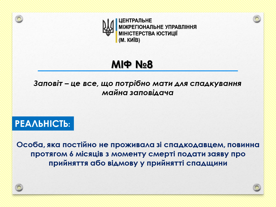 Міф 8: Заповіт – це все, що потрібно мати для спадкування майна заповідача.
