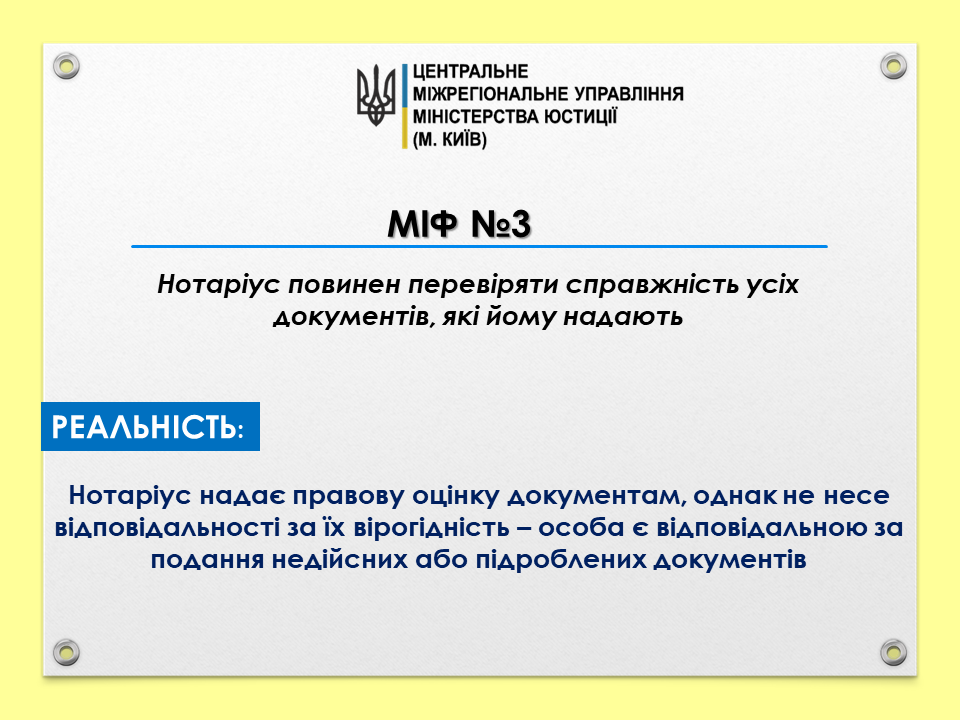 Міф 3: Нотаріус повинен перевіряти справжність усіх документів, які йому надають.