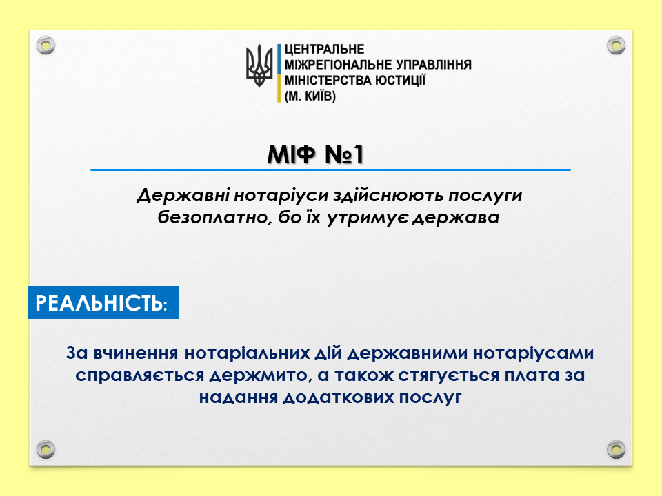 Міф 1: Державні нотаріуси здійснюють послуги безоплатно, бо їх утримує держава.