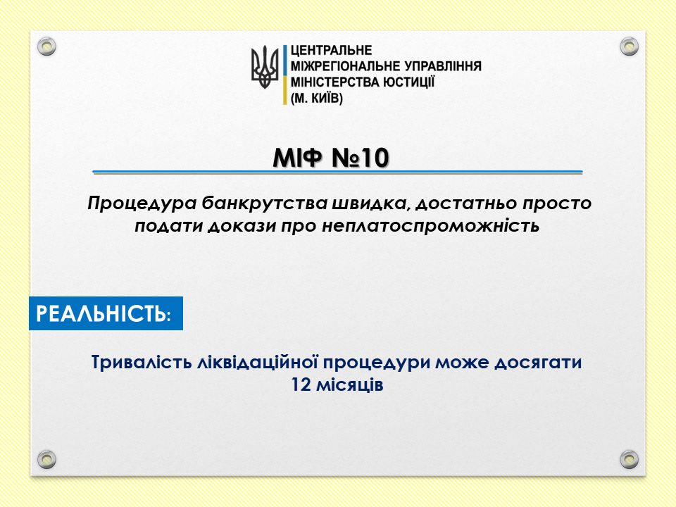 Міф 10: Процедура банкрутства швидка, достатньо просто подати докази про неплатоспроможність