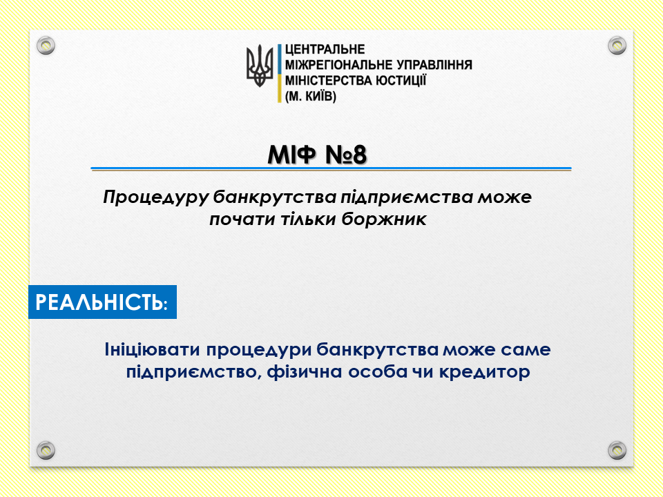 Міф 8: Процедуру банкрутства підприємства може почати тільки боржник