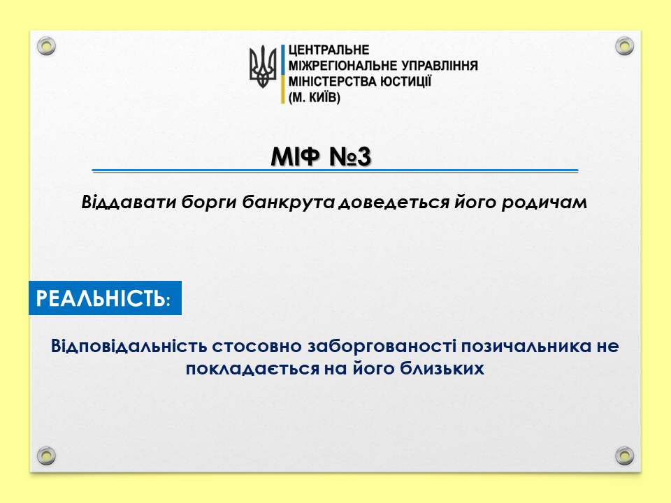 Міф 3: Віддавати борги банкрута доведеться його родичам
