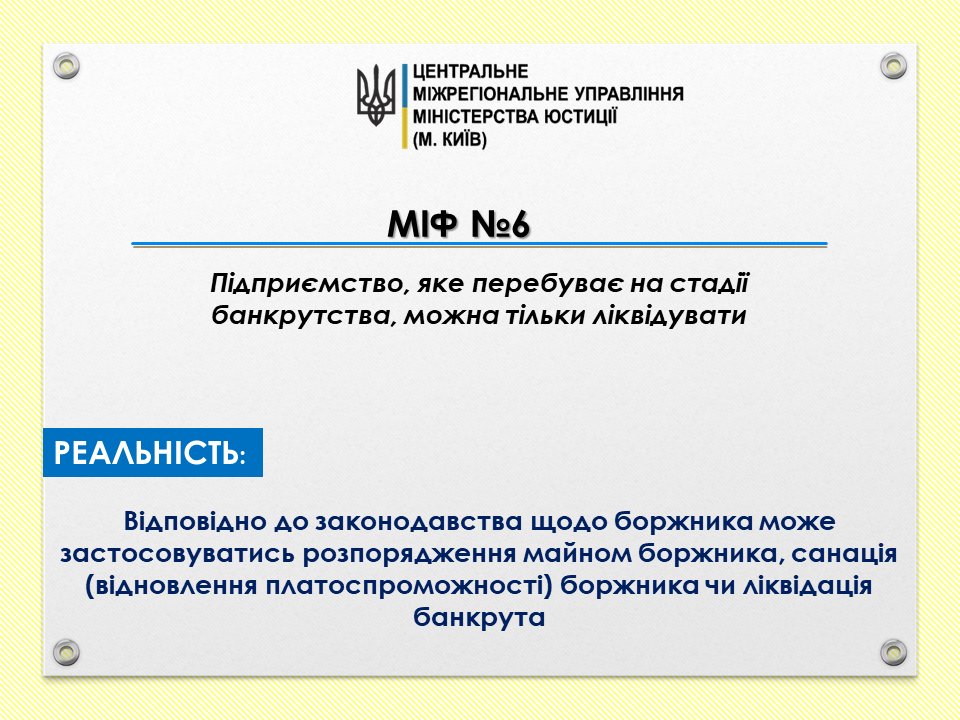 Міф 6: Підприємство, яке перебуває на стадії банкрутства, можна тільки ліквідувати