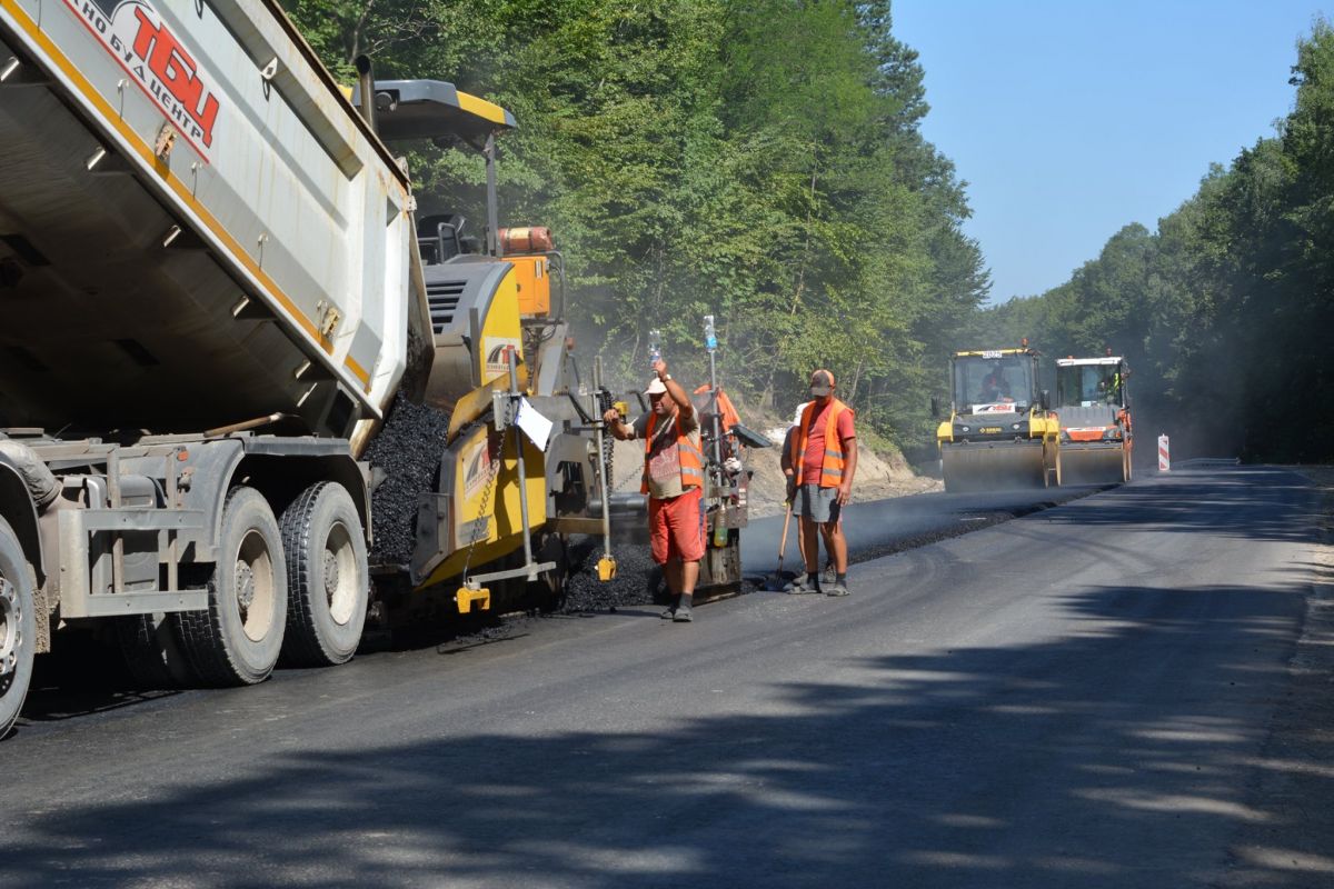 Наразі там триває влаштування верхнього шару дорожнього покриття з щебенево-мастикового асфальтобетону, планування узбіч, монтаж нової системи освітлення та облаштування пішохідних доріжок.