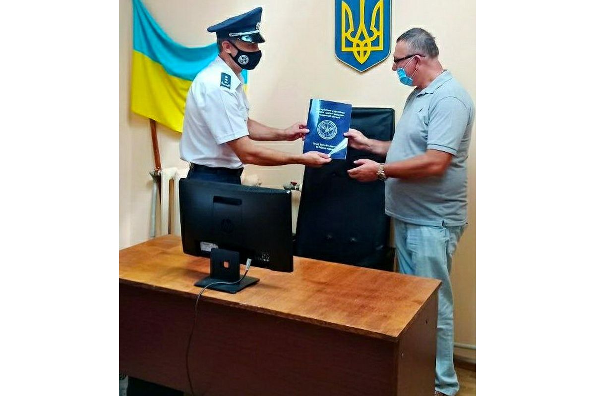 Начальник Територіального управління Служби судової охорони у Одеській області полковник Служби судової охорони Петро Талпа представив керівництву і працівникам апарату установи судових охоронців, які їх охоронятимуть, ознайомив їх з функціями та завданнями, що покладаються на співробітників Служби.