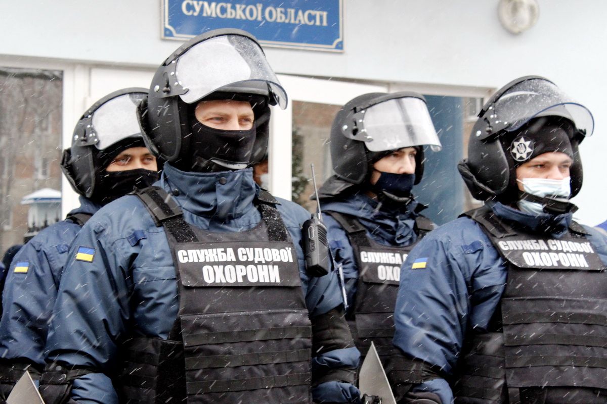Подібне тренування пройшло сьогодні, 29 січня, на базі Господарського суду Сумської області та на прилеглій до нього території. Тут співробітники Територіального управління Служби судової охорони у Сумській області також відпрацьовували тактичні дії під час забезпечення безпеки судді, стримування натовпу агресивно налаштованих осіб у їх спробах прорватися через лінію охорони на вході до судової установи, у разі виникнення безладів та порушень громадського порядку безпосередньо під час судового засідання, деблокування приміщення судової установи.