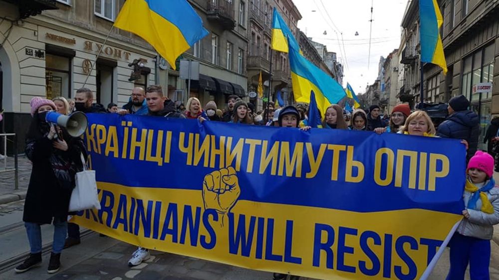 Ще одна яскрава хода відбулася у Львові. Вражаючий за розмірами банер зі словами "Українці чинитимуть опір" – це те, що зустрічало кожного, хто проходив поруч з Маршем. Люди взяли з собою навіть гучномовці для того, щоб простіше було керувати величезною кількістю людей та направляти їх. Львів завжди виділявся любов'ю до автентичних прикрас та одягу, тому під час цього заходу можна було побачити й чималу кількість тих, хто спеціально одягнувся саме так. У кого були прапори – взяли їх, адже навіть у достатньо прохолодну погоду вони зігрівали душу. Стяги були як величезні, такі, що розвівалися й були помітні ще здалеку, так і маленькі, що також майоріли серед учасників. Точної кількості тих, хто завітали на таку подію невідомо. Але їх було понад кілька сотень. Всі разом вони пройшлися від пам'ятника Іванові Франку й до меморіалу пам'яті Героїв Небесної Сотні. Таким чином вони символічного об'єднали минуле і майбутнє, живих та тих, хто загинув. Несли й досить великий прапор, який тримала чимала кількість людей. Це було дійсно яскраво, але при цьому досить добре організовано. І що важливо, жодних конфліктів під час ходи не відбувалося.