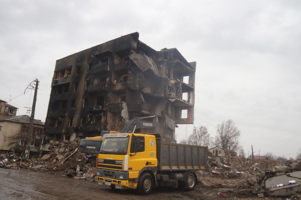 Російське вторгнення в Україну : У Бородянці продовжують розбирати завали.