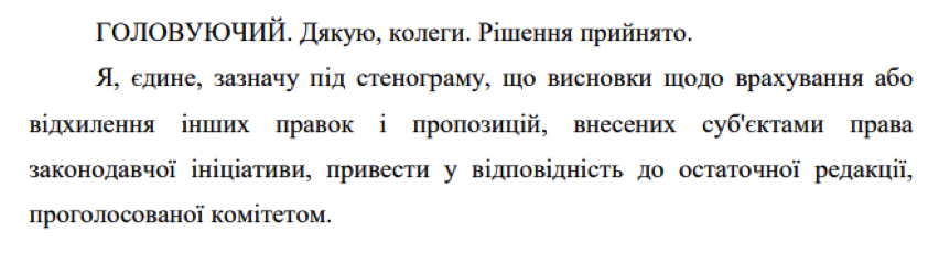 На додаток, голосування за поправку №20 де-факто не було, Головуючий Дмитро Наталуха озвучив, що інші поправки будуть включені до законопроєкту №5616 вже після того, як депутати проголосували за весь законопроєкт до другого читання. Після того, як відбулося власне голосування за поправки.