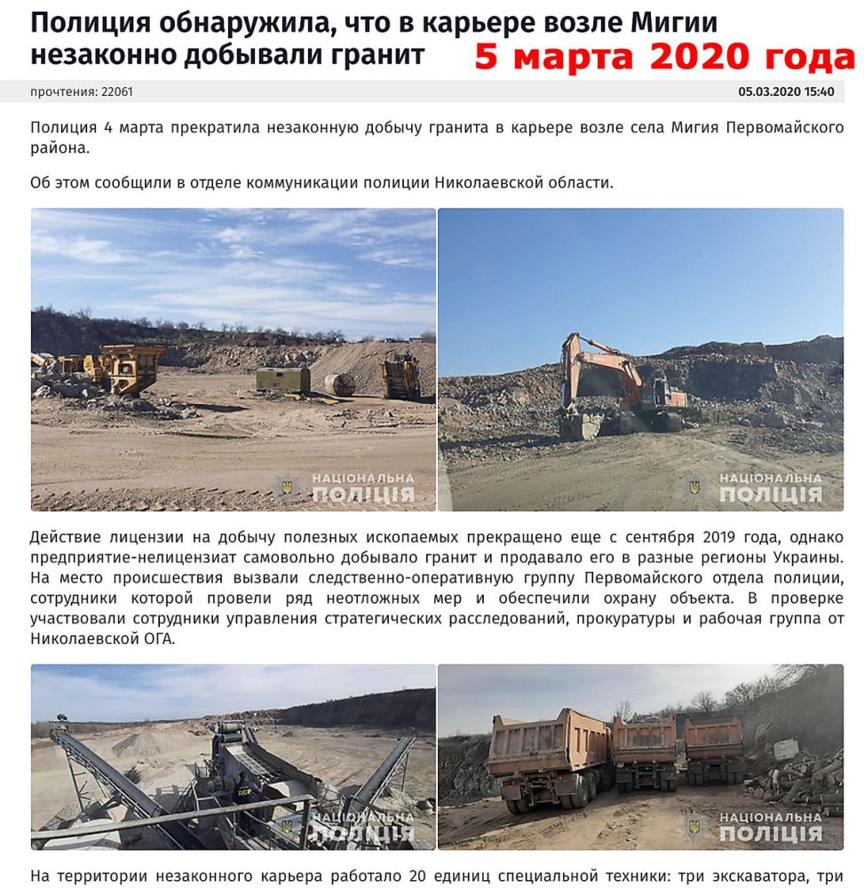 Дальше, згідно даних Чубаченко СБУ вже 4 березня вирішило попіаритись на кар’єрі. Адже стаття йде з акцентом на те що саме СБУ «кошмарила бідний кар’єр». Та по цій даті там проводила слідчі дії місцева Поліція – зовсім інша структура, яка не має відношення до СБУ. Відповідно працівники Поліції діяли згідно свого відкритого провадження. Тут що не зрозуміло?!...