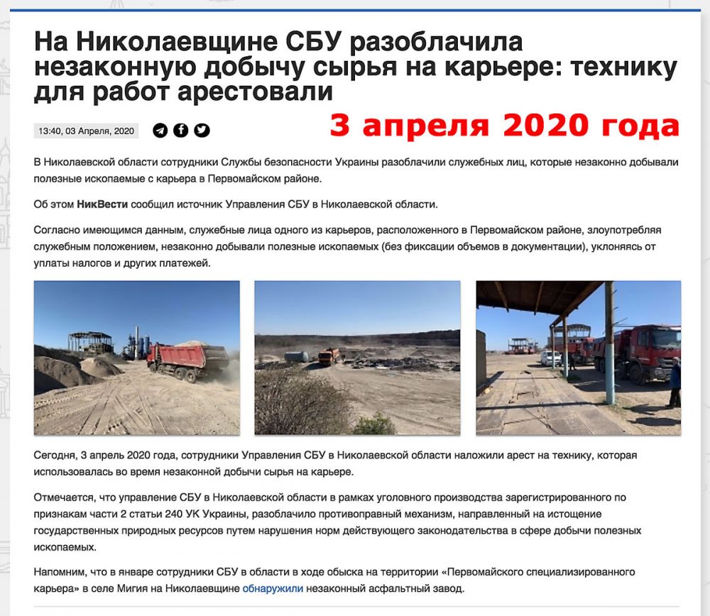 Повертаємось до викладеного Чубаченком аналізу. Він вказує що 17 січня, 5 березня і 3 квітня цього року місцеве СБУ наносило візити на кар’єр під Первомайськом в селі Мигія, для того щоб: ««сделать» столько показателей»(висловлювання Чубаченка), все підкріплює скрінами із публікацій ЗМІ. – Ну, чесно - дуже смішно від поданих даних…Що скажеш – «великий аналізатор», вибачте по іншому ніяк… Де в людини логіка?! І чому він як журналіст не слідкує за кримінальною хронікою області… А ТЕПЕР ПО СУТІ(це кожен може прослідкувати по його скріншотах-доводах):